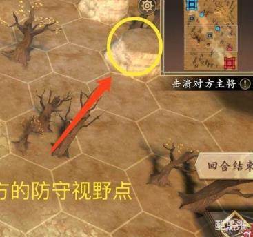 而右下角的后手方(红色)附近,有两个可用来防守的视野点。