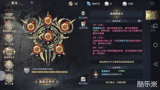 铭文我们选择【战神的毁灭】。拥有变身为战神能力的“战神之怒”,在这套铭文的加持下可以增加15秒的持续时间,基本可以做到全程战神!雷霆震击提供的超高暴击率和暴击伤害+癫狂效果的极限攻击速度,配合战神附体的各项属性加成,活脱脱一个阿瑞斯在世!还有谁!还!有!谁!!!
