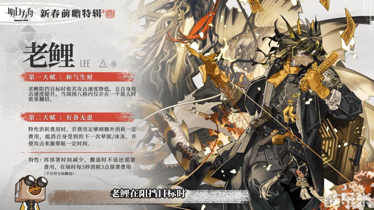 明日方舟老鲤技能天赋怎么样?明日方舟即将在春节版本上线六星特种干员老鲤。很多小伙伴都很想知道老鲤的技能是什么,今天小编给大家带来了《明日方舟》老鲤技能天赋一览。感兴趣的小伙伴一起来看看吧。