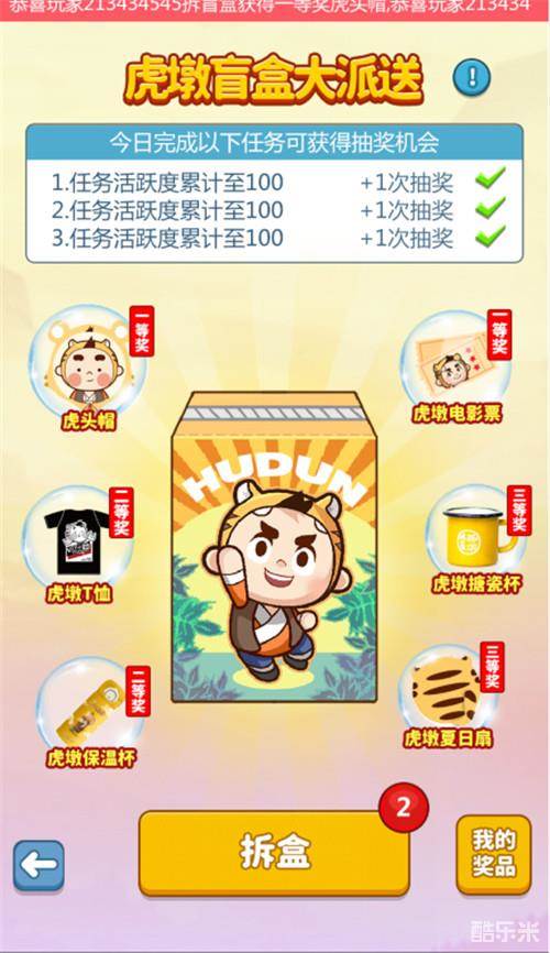 在春节期间,还将开启“线上抽盲盒”活动,只要在线就能随机抽取盲盒,获得虎头帽、T恤、电影票、搪瓷杯等丰厚好礼。