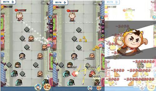 当玩家进入游戏后,就可以滑动屏幕,调整角度发射石头将强盗小兵消除。使用大招,小虎墩还能发动强力攻击,清除地图上的所有障碍。