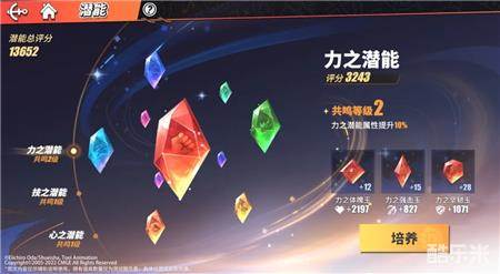 -激活共鸣:每种潜能都有三个槽位,分别镶嵌三种潜能玉——体魄玉、强击玉和坚韧玉。三个槽位都有潜能玉后,就能激活潜能共鸣,产生特殊效果加成。