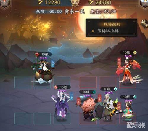 1、背水一战关卡要求在上阵2人的情况下还要通关关卡,只给了五名上阵的角色。