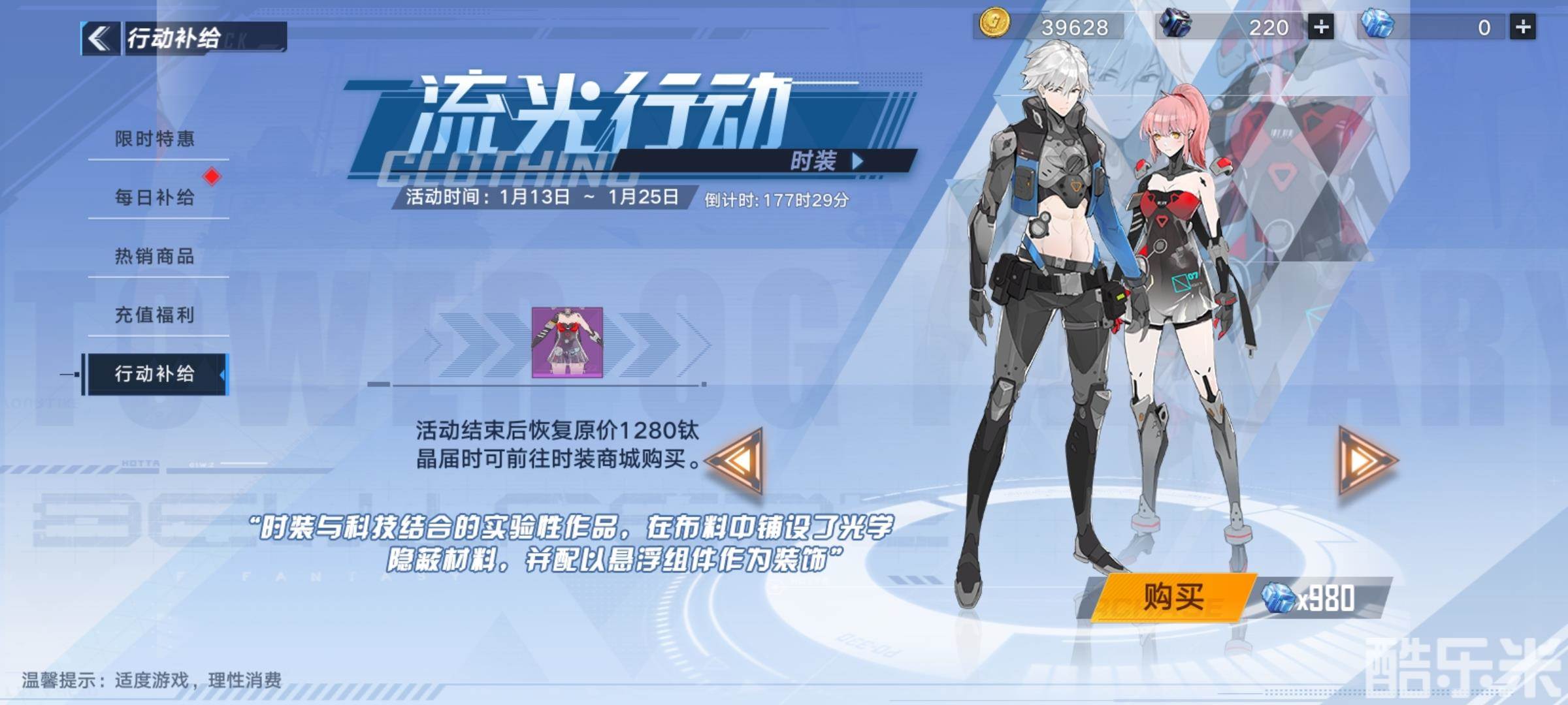 流光行动是三套新时装之一,在商城可以购买 ,目前是有折扣的,一直到一月二十五号