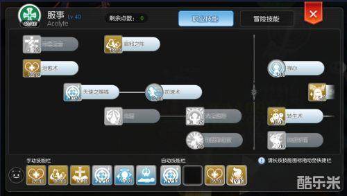 服事技能加点:如果你按我上方说的AS的加点方式,你的技能点顺序应该是5级治愈术,10级天赐,10级加速(天赐和加速对点,保证你有1级天赐就有1级加速),治愈术加到10,霸邪10。 说一下好处,先点5级治愈为了保证生存,在你点了A的基础上,你有一定的回避率,5级的治愈术已经足够。 接下来是服侍的核心技能,天赐&加速,我们一般也叫做12。 这个是一定要点满的,强的不行~接下来就补足治愈术和霸邪,霸邪是以后打mvp的强力辅助技能,满级给目标友军加对方血量上限的30%的护盾,和我一起玩的骑士65级13000的血量,霸邪可以顶4000+的伤害,比治愈术高,而且瞬发,点满不多说。