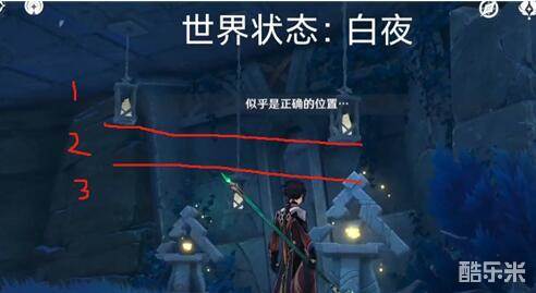 1.要先把这个日月轮回机关把时间设置为白夜状态,然后再去到这个狭间之街,去到下面图中的位置。