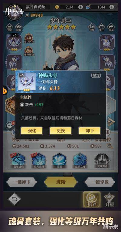 《斗罗大陆:武魂觉醒》手游完美还原了这套魂骨修炼系统,从年份系统,到部件强化应有尽有。