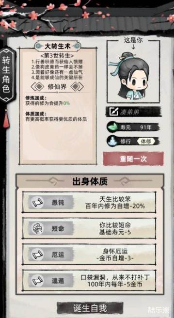短命:你比较短命,基础寿元-5