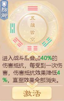 五蕴皆空:整个大话手游中被使用到的最多的阵法,简单粗暴,就是临时增加伤害抵抗 让自己前几回合更耐揍,每受到一次攻击,就掉一层