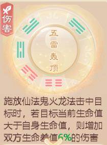五雷轰顶:仙法鬼火龙法击中目标时增加生命值差值的伤害(前提是敌人的血比自己的多,所以只能低血单位使用)最容易被玩家们小看的阵法,没有高额忽视及伤害加深的属性时,此阵法才是敏仙最适合的,无脑增加输出,每回合都百分百生效,性价比极高,打独步时我最爱使用。多为敏仙使用。
