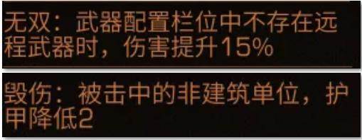 4、其次在副武器方面推荐选择带有无双属性的冷兵器,其他必带属性为满攻和毁伤,推荐使用斩马刀。