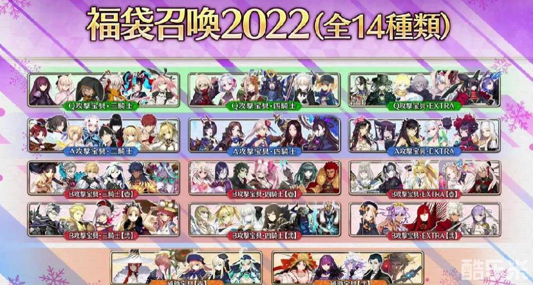 这次的新年福袋最大的特色是官方按照宝具的颜色进行了划分,划分成了绿卡、红卡、蓝卡三种伤害型的宝具,以及没有伤害的辅助型的宝具,因为截止到目前为止,日服涉及到的从者数量实在是太多了,所以划分的这么细对于玩家来说也方便进行选择,所以这个福袋综合评价还是挺高的。