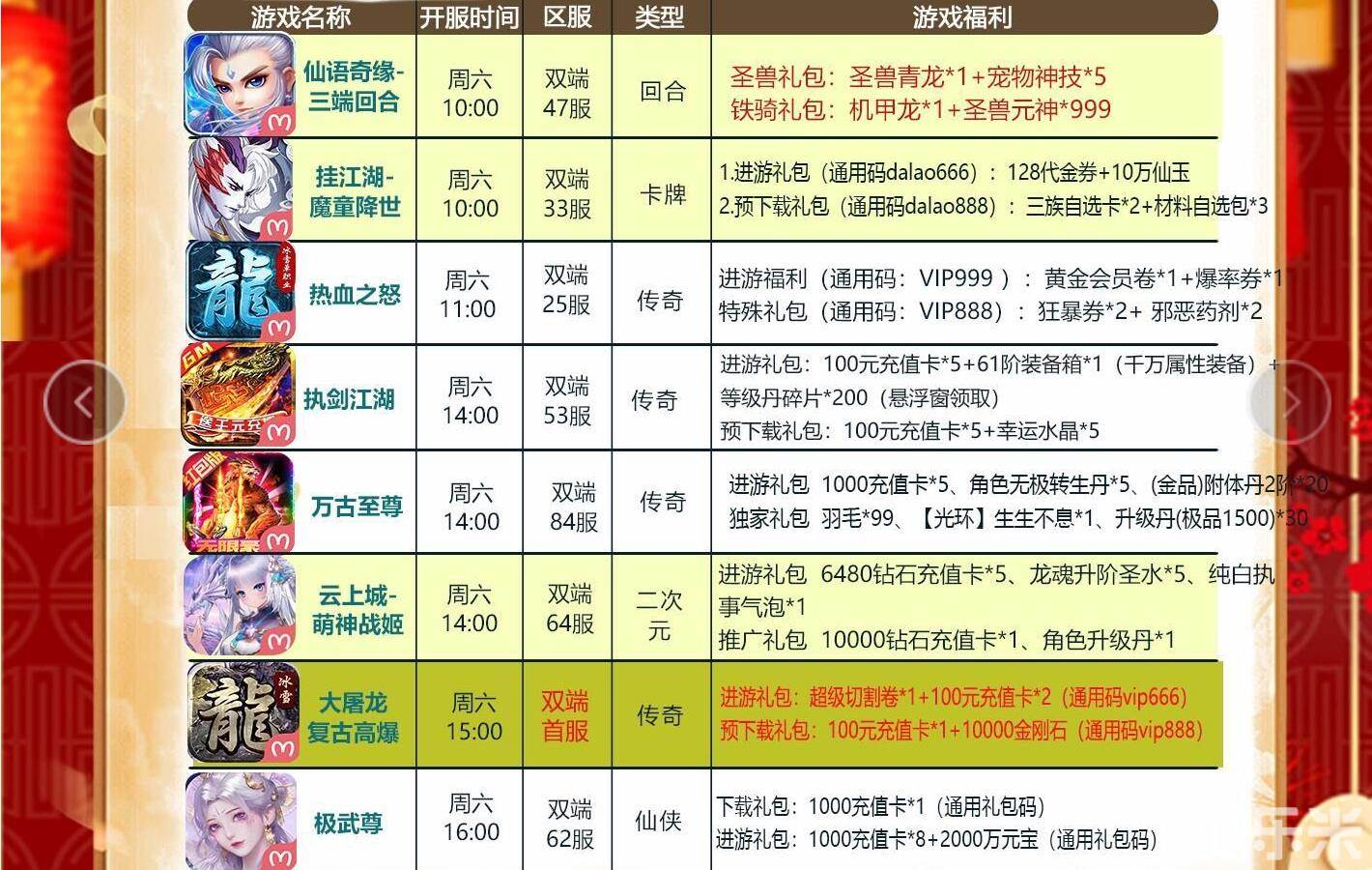 福利礼包:100万元宝+苹果*2(通用码vip999)