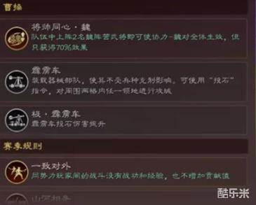 势力特性:协力营特效,只需2名魏国武将,就可以激活全队的10%*70%=7%属性加成。