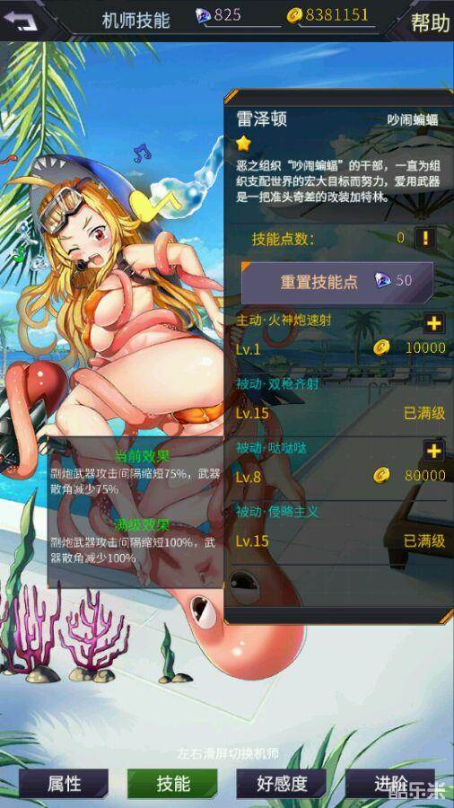 副炮武器攻击间隔缩短100%,武器散角减少100%
