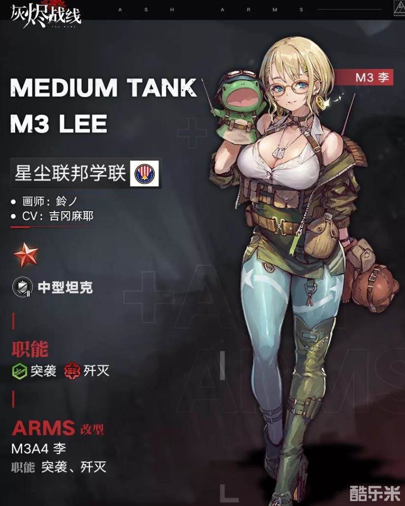 M3 李作为星辰联邦中年纪已经不小的中型坦克,其独特的火力布置于安排让她显得特殊,而其好为人师的性格也让其有了一套与其他人完全不同的战斗思维,这也让其在战场上获得了不少的人气。