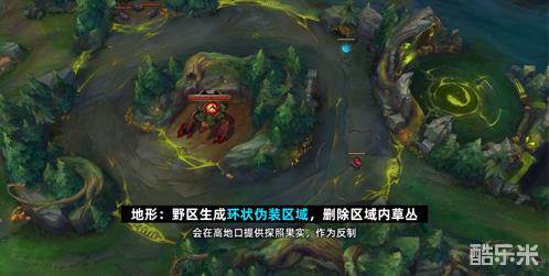 在四片野区都会生成环装迷雾带,双方英雄进入迷雾都会获得伪装效果。
