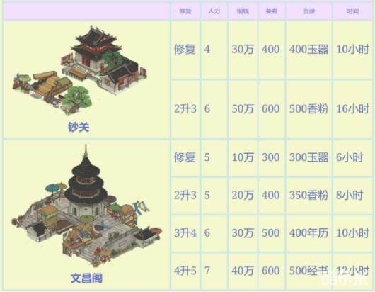 修复:5人 900铜钱 300菜肴 30玉石 4小时