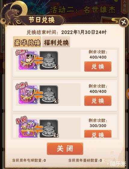 2.「周年蛋糕」、「周年气球」可以兑换各种高级稀有资源,详情请登录游戏查看。