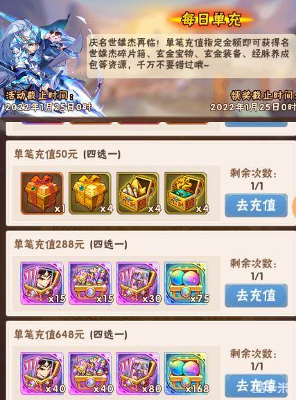 少年们单笔充值指定金额,即可得到玄金装玄金宝碎片箱及丰厚的养成资源,少年们千万不要错过哟~