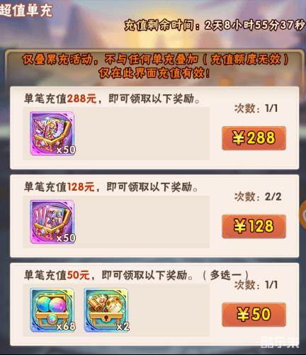 1.超值单充的充值额度计入“限时活动”中累充活动的累计充值额度;