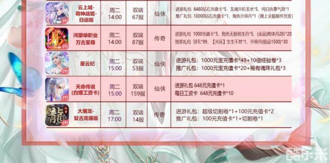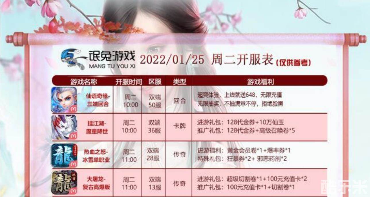 | 仙语奇缘-无限抽 | 天下50区( 苹果- 安卓) | 2022-01-25 10:00:00 |