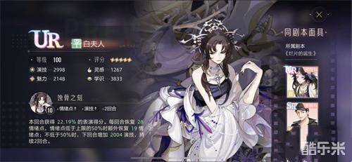 白夫人是—张全面的更倾向pvp的辅助面具。以恢复情绪点为主,演技增加为辅。