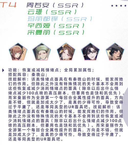 5、T4:周若安、云璟、玛丽都铎、辛西娅、宋曼丽。