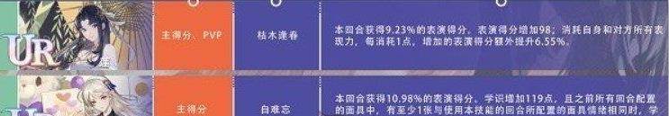 1、主得分类的面具:是游戏中主要的获取分数的手段面具,这类面具对游戏中的作用非常的大,也是游戏中的关键的面具,建议前期先进行一些较为低级的培养,后期根据建议进行高级面具的培养,代表面具:沈嘉林、伊思源。