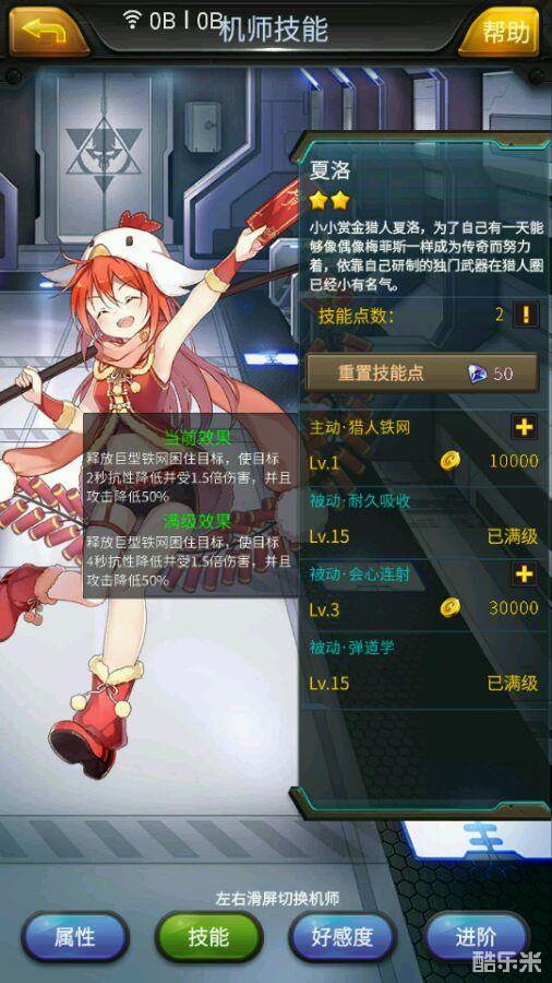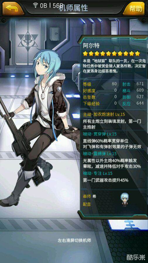 小小赏金猎人夏洛,为了自己有一天能像偶像梅菲斯一样成为传奇而努力着,依靠自己研制的独门武器在猎人圈已经小有名气。夏洛是一名优秀的实弹主炮机师,主动技能比较看脸,但确实相当给力。推荐机体红狼7,瓦7,瓦沙克炮。