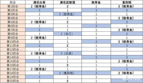 3、女儿红 保护/抵抗,吉利虾 保护/抵抗/血闪,怀抱鲤 输出,叫花鸡 梅子/纯堆血。
