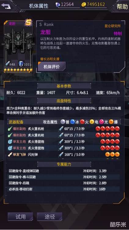 龙胆是以压制火力制胜为目的设计的重型机甲,灼热的速射武器将在战场上拉起一道道夺命的火舌,无情收割着那些遇上它的可悲灵魂。龙胆有着辉煌的过去,一代版本一代神,现在虽然不再强势,但也有着独特的优势,6星底盘可用,萌新福音。