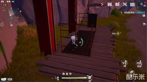 2、这里有个升降梯等他下来的时候跳上去挂在升降梯边缘