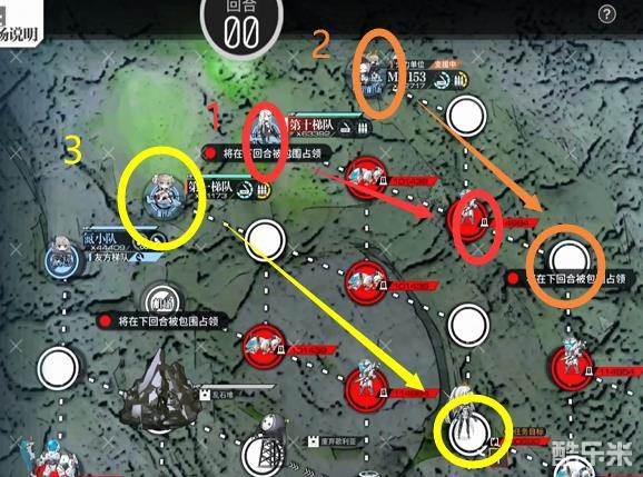 思路很简单:莫娜有行动点减免且能抗住最上两路所有怪。中间主要接一战,下三路需要稻草人放分身,如果练度够砍死两只高达可以放重装,不够再放格里芬梯队。