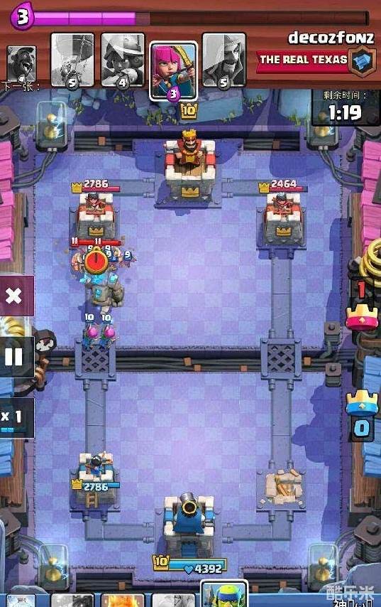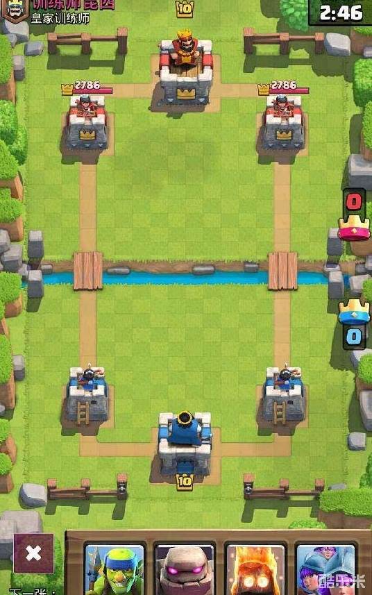 这种起手就有石头人和三枪的局应该是最好打的。首选等圣水满了之后再主塔后面放石头人,等石头人走到河道后圣水就够放三枪,三枪跟在石头人后面疯狂输出,基本上打塔的话三秒就可以推掉。千万要记住,这种石头加三枪只可以用两次,一次是刚开始的时候,一次是双倍圣水的时候。其他时候就做好防守。
