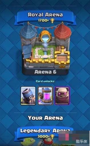 当玩家到达A6竞技场时奖杯数会在1700以上,该杯段宝箱可以开出迫击炮、紫水收集器和紫卡石头人,迫击炮和石头人在防守能力上很强高杯段必用卡牌。首先是紫卡第二卡牌碎片在获得难度很低,玩家们可以通过部落好友赠送获得,也可以向部落好友要卡获得卡牌。