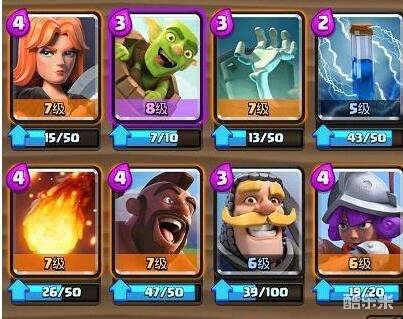 2.小编配的第二套卡组是胖子、皇家巨人强攻卡组。这个是小编大号主卡组的一个替换卡组,胖子和皇家巨任选其一,野蛮人滚筒替换滚木(小编在使用后觉得滚筒比滚木效果要好不少,因此这个号小编就决定一直用滚筒了)。这套卡组的进攻方式很简单,胖子蹲底或者皇家巨人河道下,准备好滚筒和小电,重点清一下小费。防守女武神配合女枪,地面空中防守都极强,很适合6阶之后的上分。