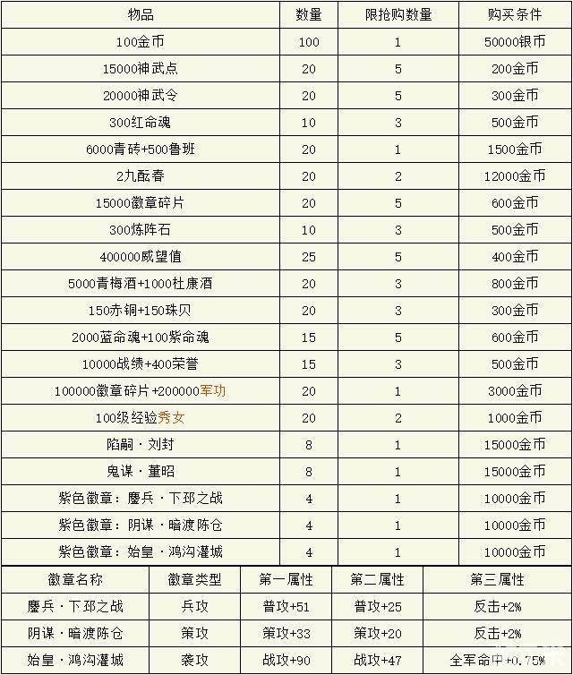 5.本次神秘商人所有商品都是超低价格,只为助力跨服战,手快有手慢无。