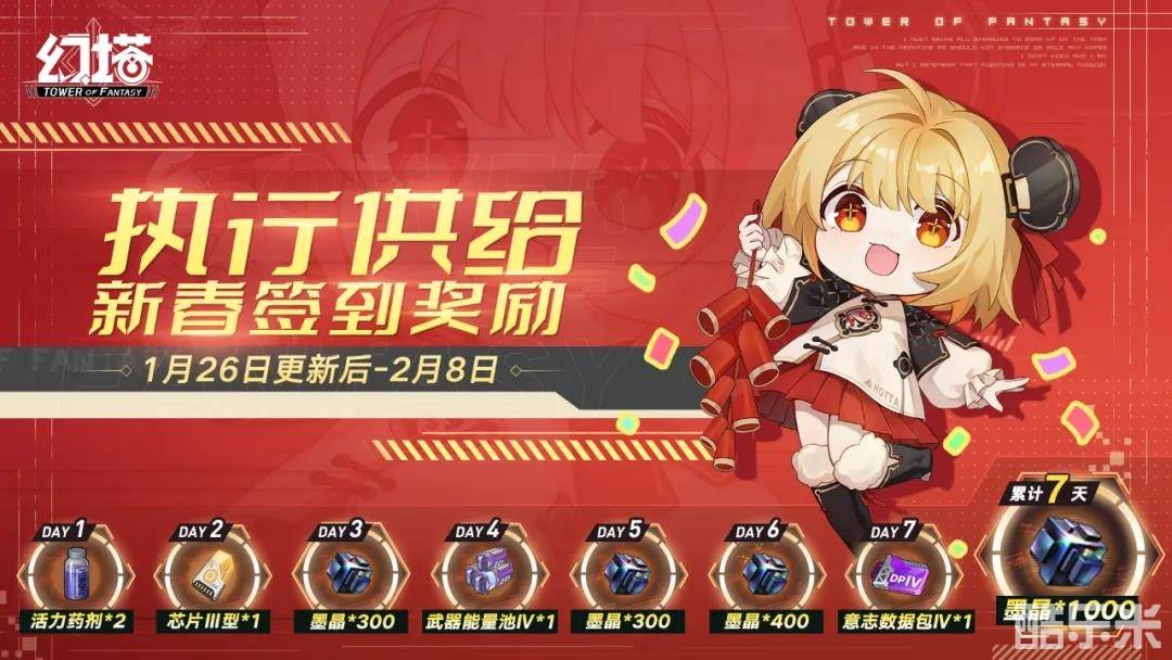 1月30日23:59:59-2月8日23:59:59期间,登录游戏即送【Mi-a拜年头像】、【联合补给芯片I×3】、【活力药剂×1】、【芯片III型×1】!