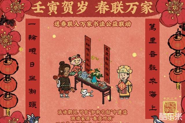 1、晚开可以通过知府宅邸的功能来建造联动的家具春意对联这个道具。