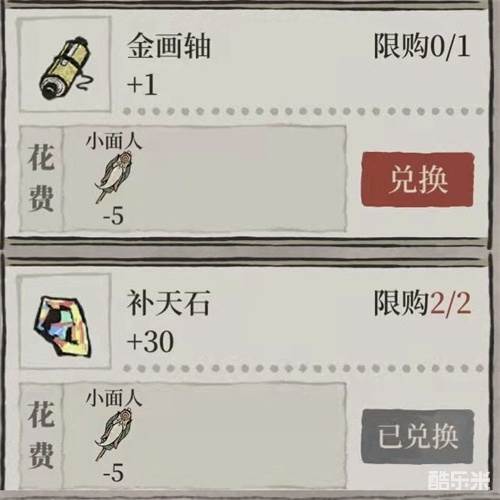 3、其他像补天石(小面人*5)、金画轴(小面人*5)