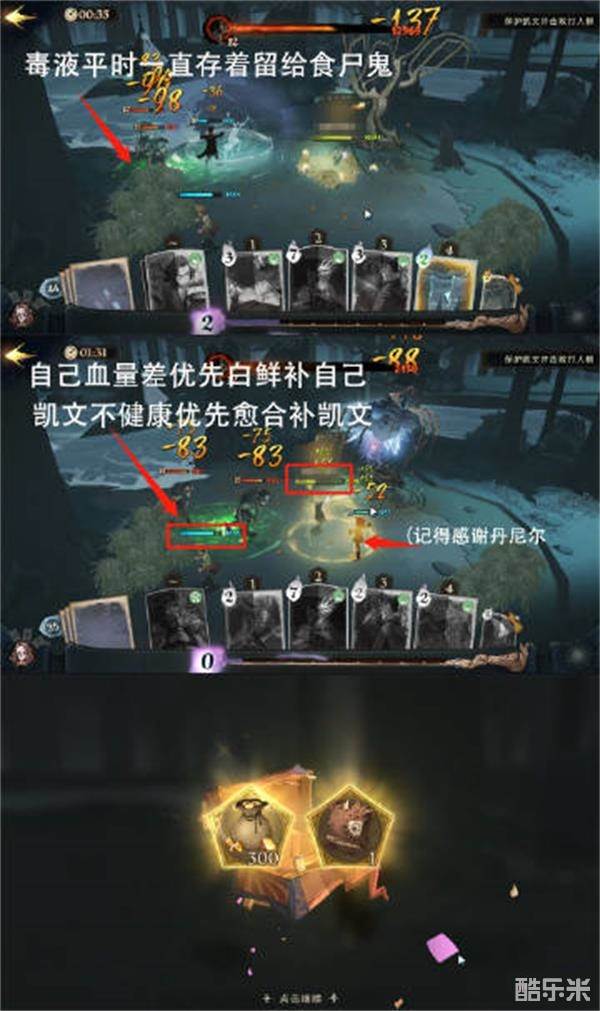 6.正常情况下我们血量会比凯文低,优先用白鲜补自己。因为凯文会跑,所以愈合留给凯文。