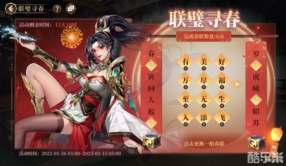 活动时间:2022年1月26日5:00开启~2月15日5:00结束