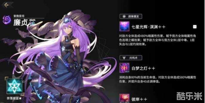 在长期战中可以把廉贞的奥义当每回合奶量4500的回血技能用,但高层的流血效果会大幅降低角色的攻击力,廉贞给的连理之蝶没有免疫debuff的效果,不知道是不是设计失误。