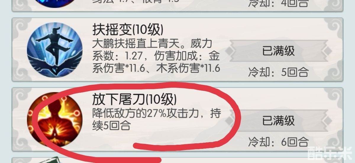 老龙不清楚更高层能不能闪避,如果闪不动我选择孔雀换。10级屠刀-27%攻击,22级-39%攻击,这技能一级1%。