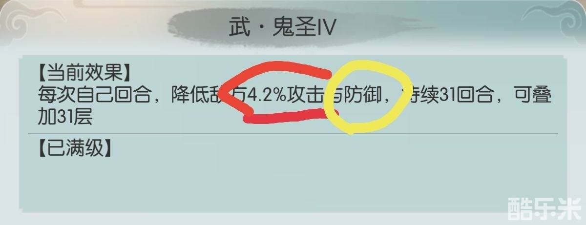 :鬼圣还持续减对面攻击!而且还减对面防御!只要第6回合血线有起色....呵呵。总之有种能够打到60关的幻觉。