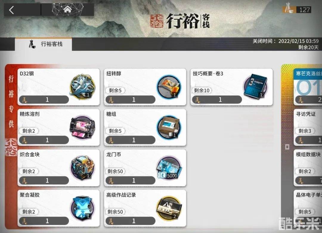 晶体电子单元、三水锰矿、寻访凭证、龙门币*5000、狙击芯片、异铁组、异铁块、高级技能书、切削原液、异铁、装置、晶体原件、模组数据块等等。