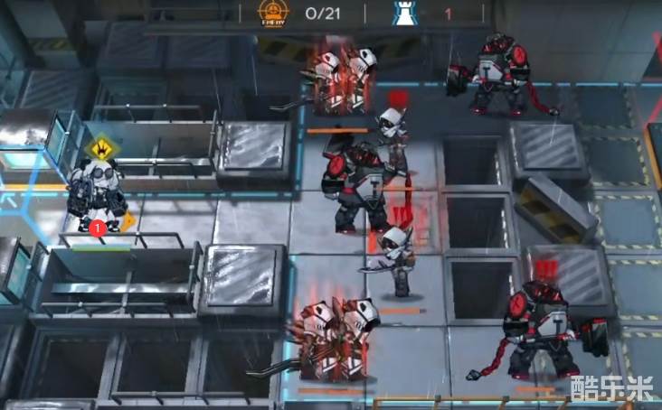 2.如图所示两个小怪就位的时候使用技能,把他们锤下去的同时把大锤打到源石地板上。