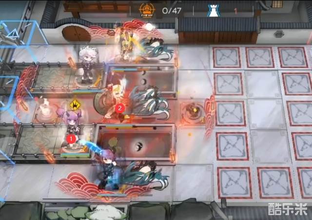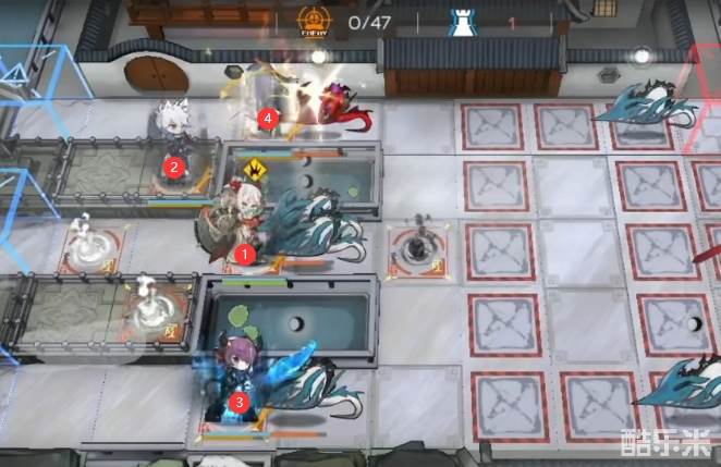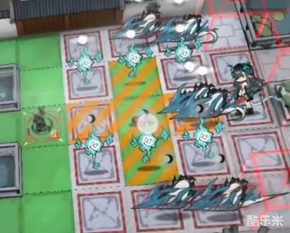 2.如图所示部署炎熔,然后接到第二波敌人后开启年技能。