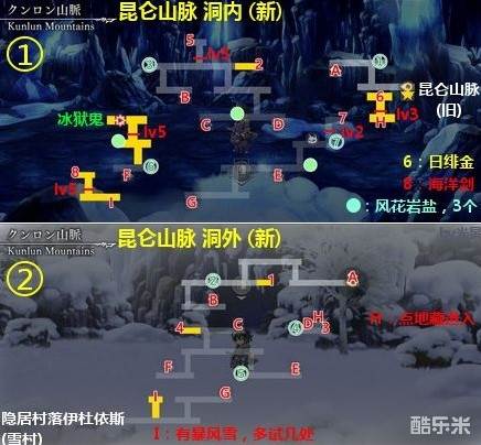 地图:2张。横线:冰墙,lv1~5:冰晶弓等级为1~5才能打破冰墙